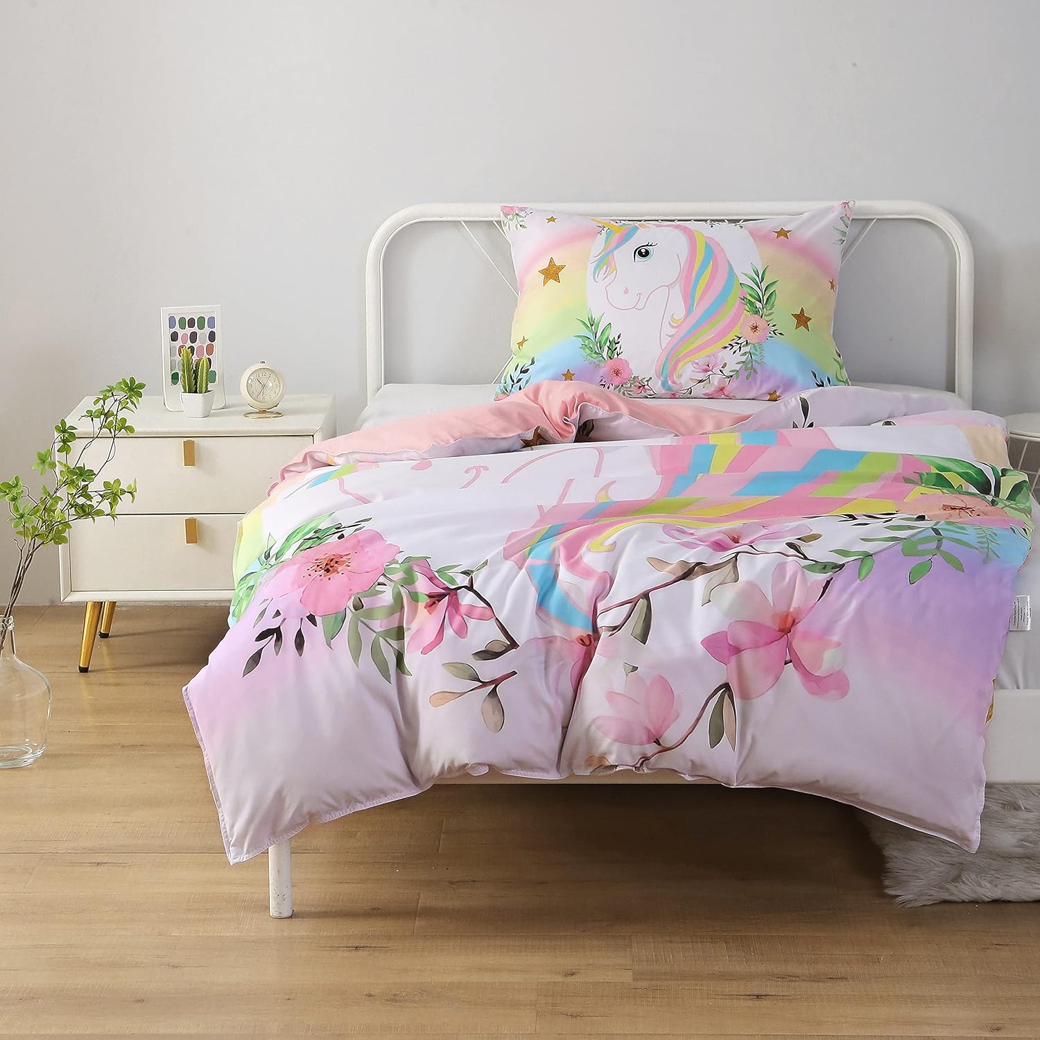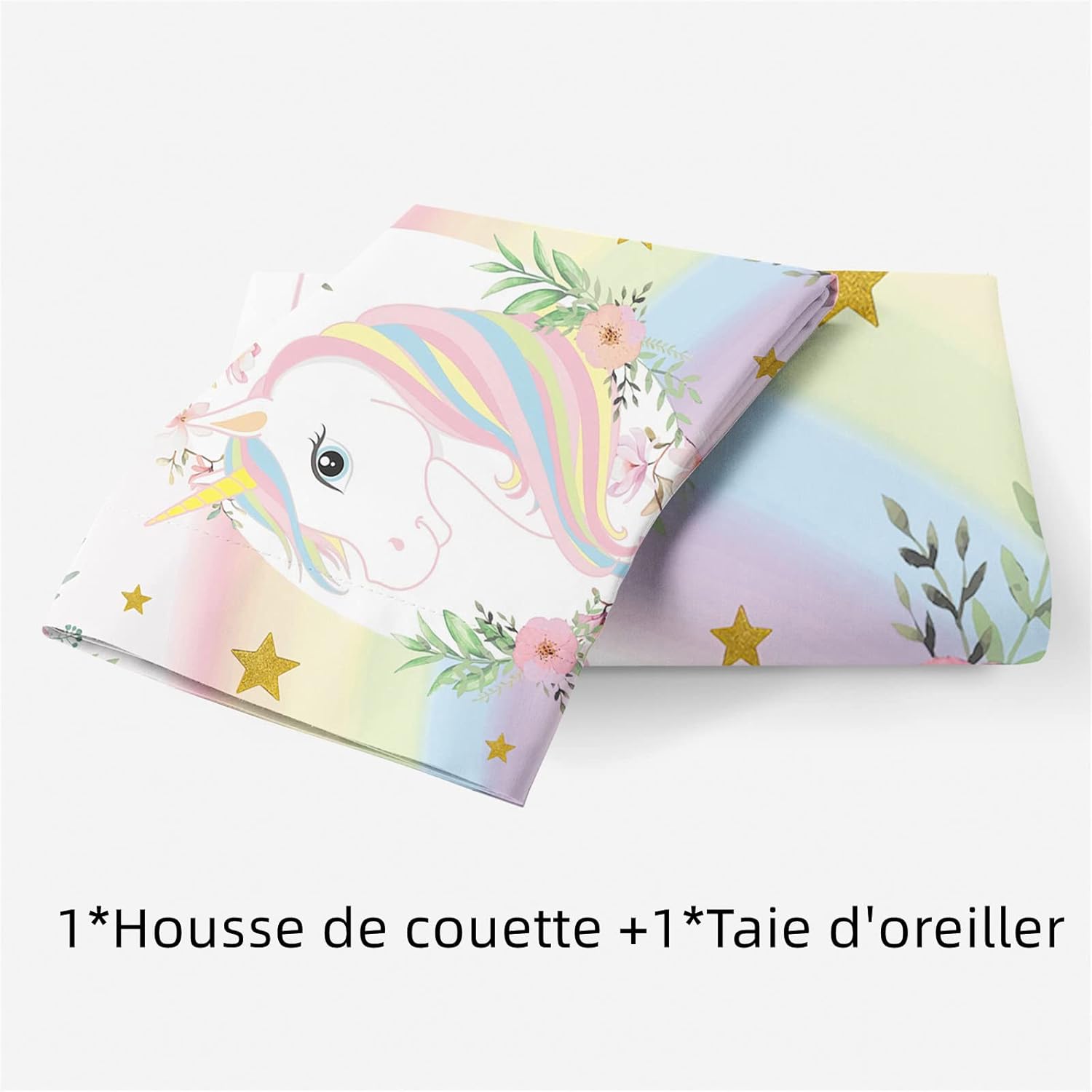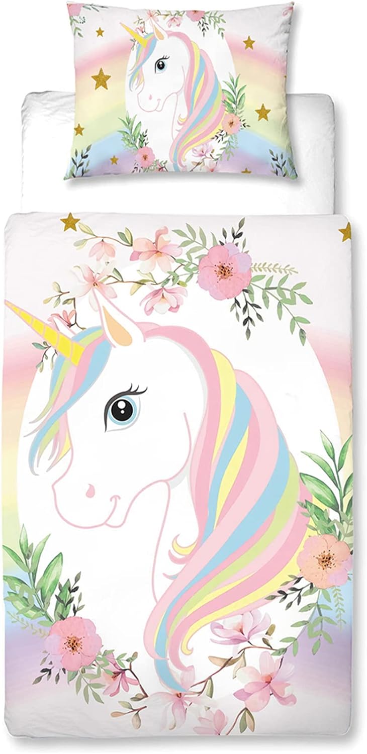 MUSOLEI Bettbezug Einhorn 120x150cm, Mädchen, Kinder, Rosa, 3D-Motiv, Bedruckt, Bettwäsche für Einzelbett, aus Mikrofaser, mit Reißverschluss mit Kissenbezug, 40x60cm, Geschenk für Party