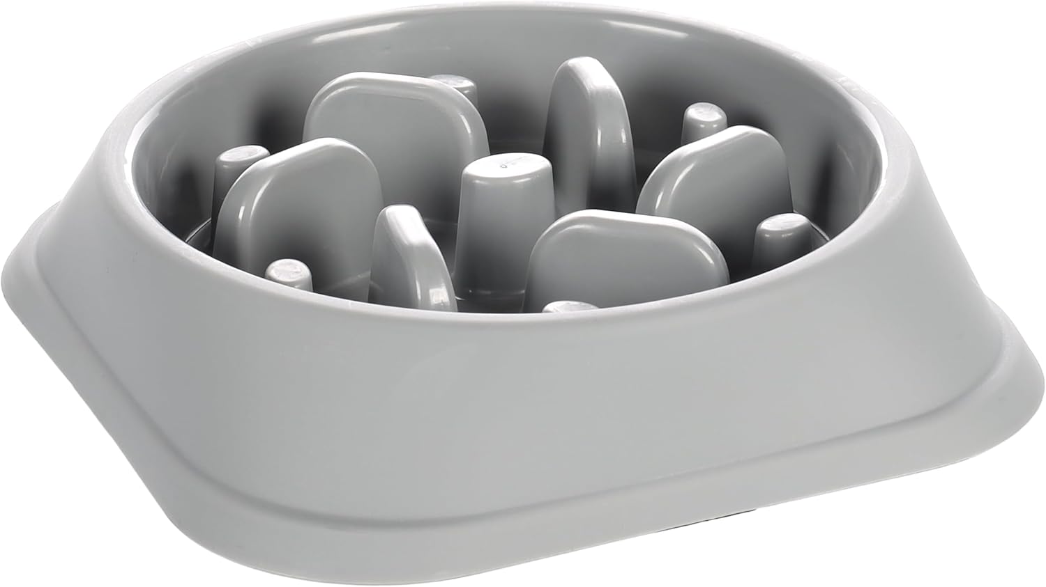 Încetinește consumul hranei, prevenind înghițirea rapidă și balonarea