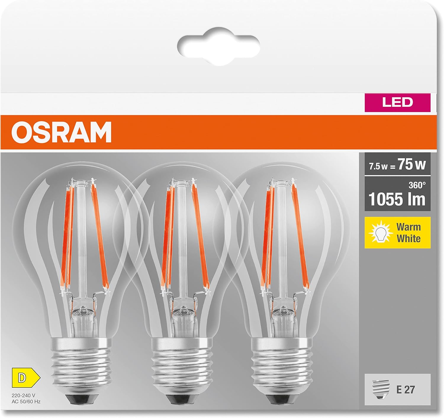 [RESIGILAT] OSRAM LED Base Classic A75, E27, Alb Cald 2700K, 1055 Lumeni, 3 bucati