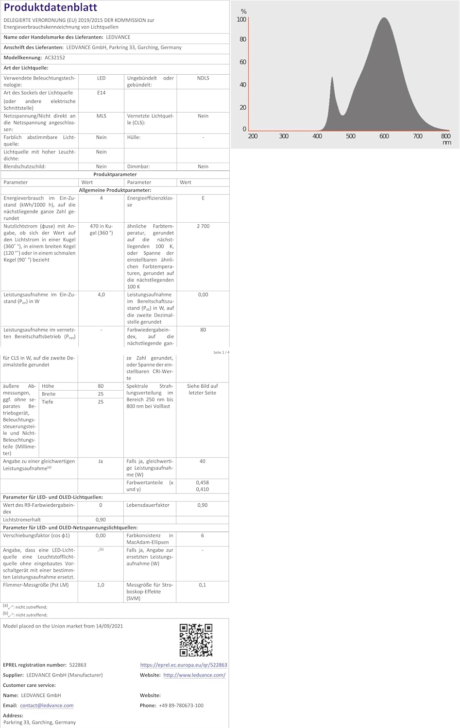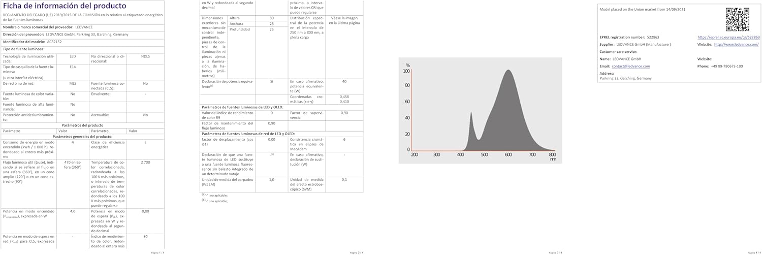 Durată de viață: 15.000 ore, Wați: 4 W, Lumeni: 470 lm, Kelvin: 2400 K, Lumină galbenă, Soclu: E14