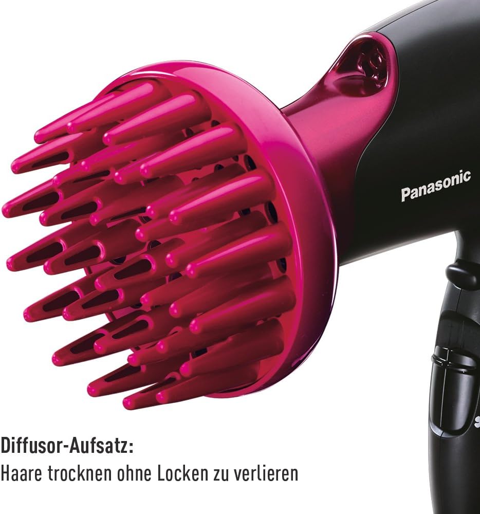 Uscător de păr cu tehnologie Nanoe Panasonic, 3 viteze și 4 trepte de temperatură, cu difuzor și duze de styling, design ergonomic, roz