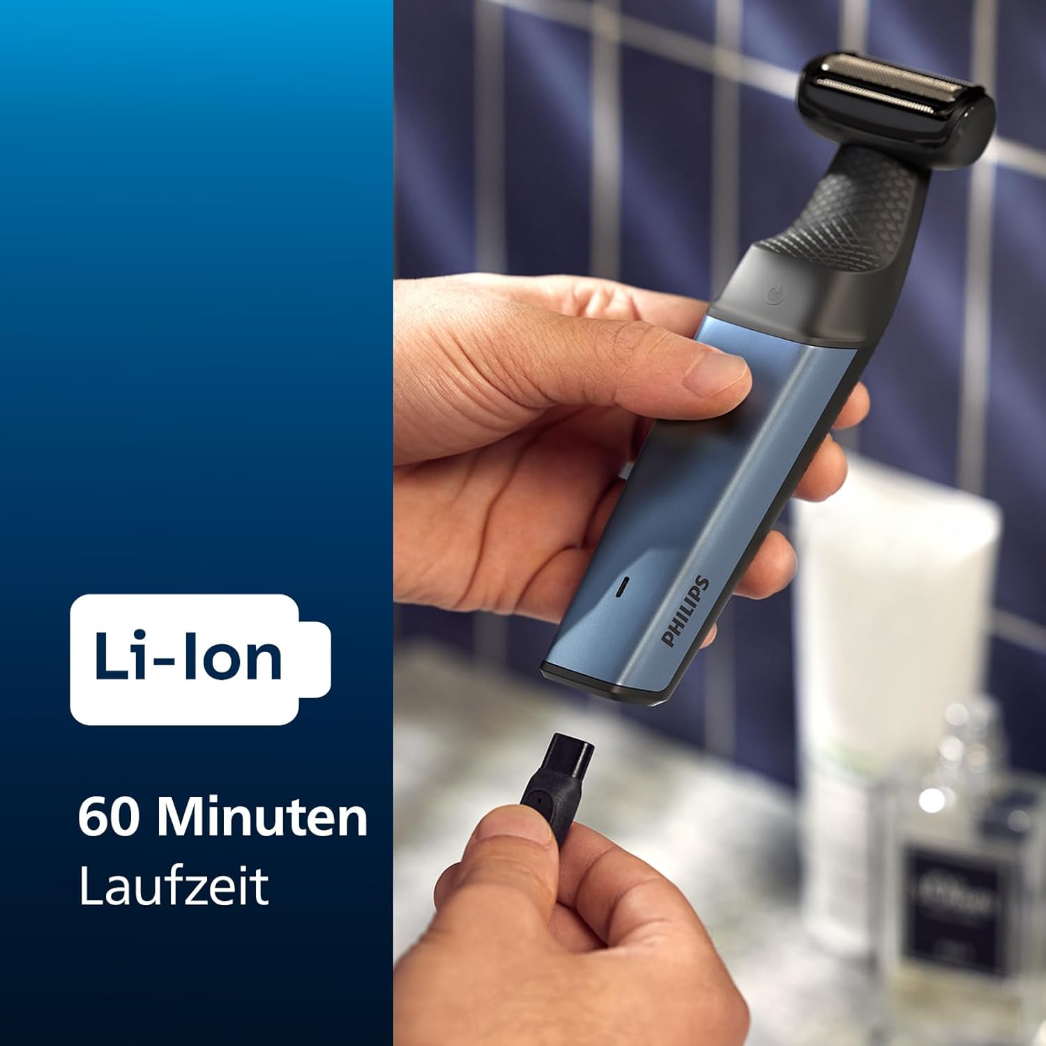 Bodygroom cu acumulator: 60 de minute de funcționare a bateriei și 1 oră de încărcare rapidă.