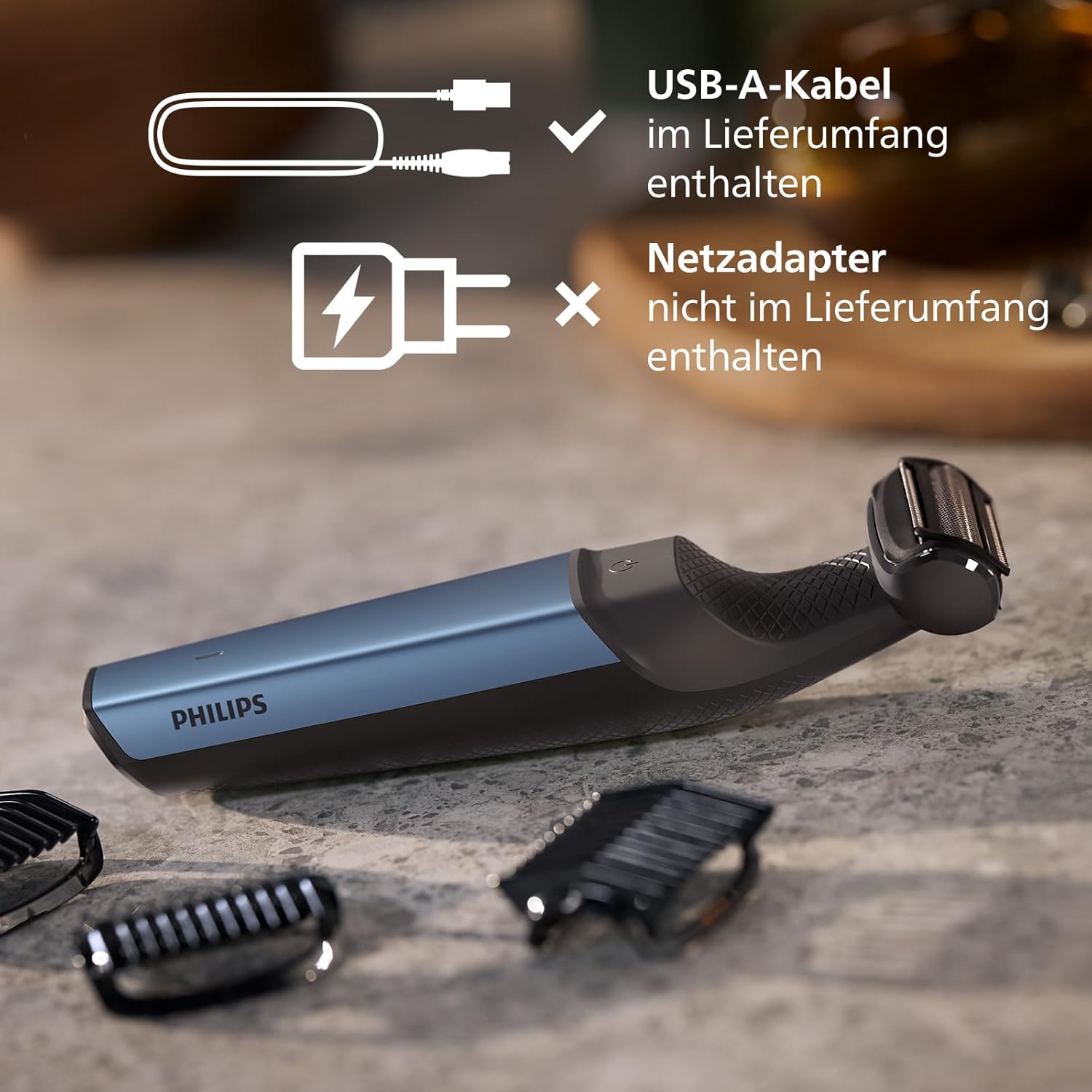 Aparat de tuns corporal Philips Bodygroom Seria 3000, rezistent la apă, pentru zone intime și corp, bărbierit precis și confortabil, îngrijire completă, autonomie 60 min, model BG3027/03.