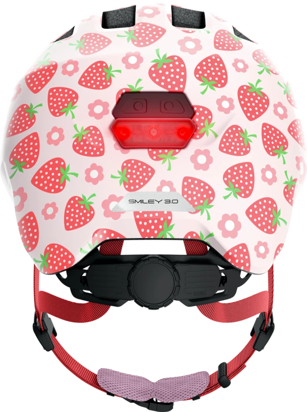 Casca pentru copii Abus Smiley 3.0 LED Rose Strawberry ofera siguranta si confort zilnic, avand lumina LED integrata pentru vizibilitate crescuta. Usoara si bine ventilata, dispune de sistem de ajustare facil si captuseala moale. Designul atractiv roz cu motive de capsuna face plimbarile mai distractive si sigure.