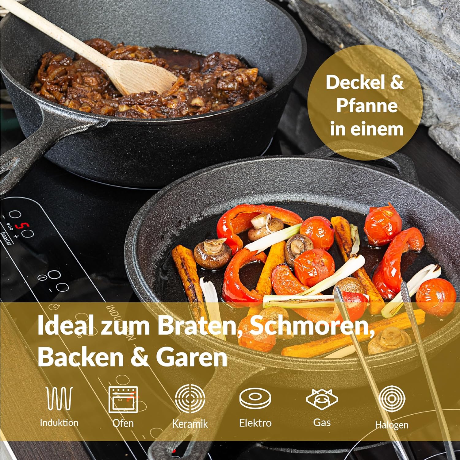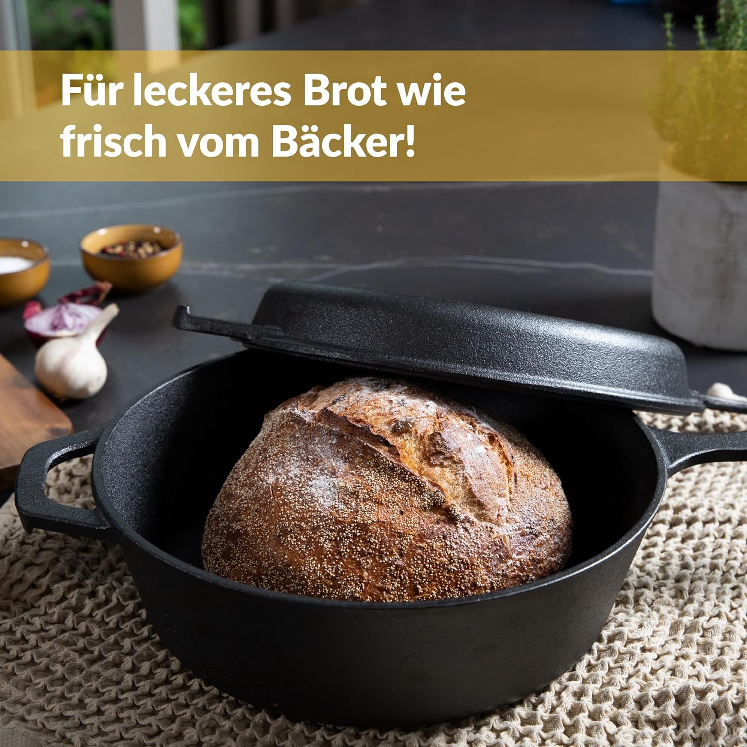 • FUNCȚIE 2 ÎN 1 – La noi primești mai mult decât o simplă tavă de copt pâine cu capac, deoarece acest capac din fontă poate fi folosit și ca tigaie.