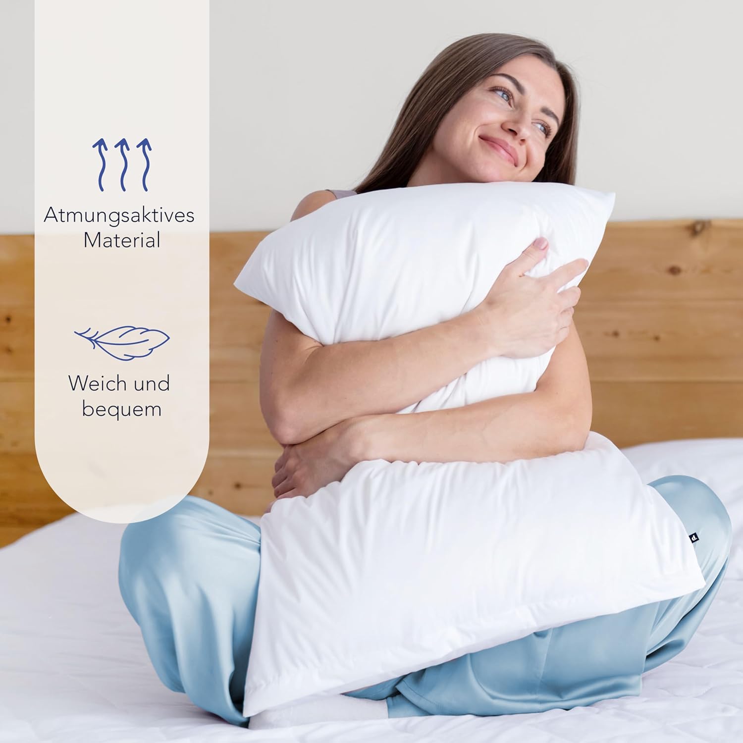- Față de pernă impermeabilă și respirabilă pentru un climat de somn proaspăt – husa de pernă respirabilă îmbunătățește circulația aerului și acționează ca o pernă protectoare împotriva transpirației pe vreme caldă, vară sau pentru pielea sensibilă.