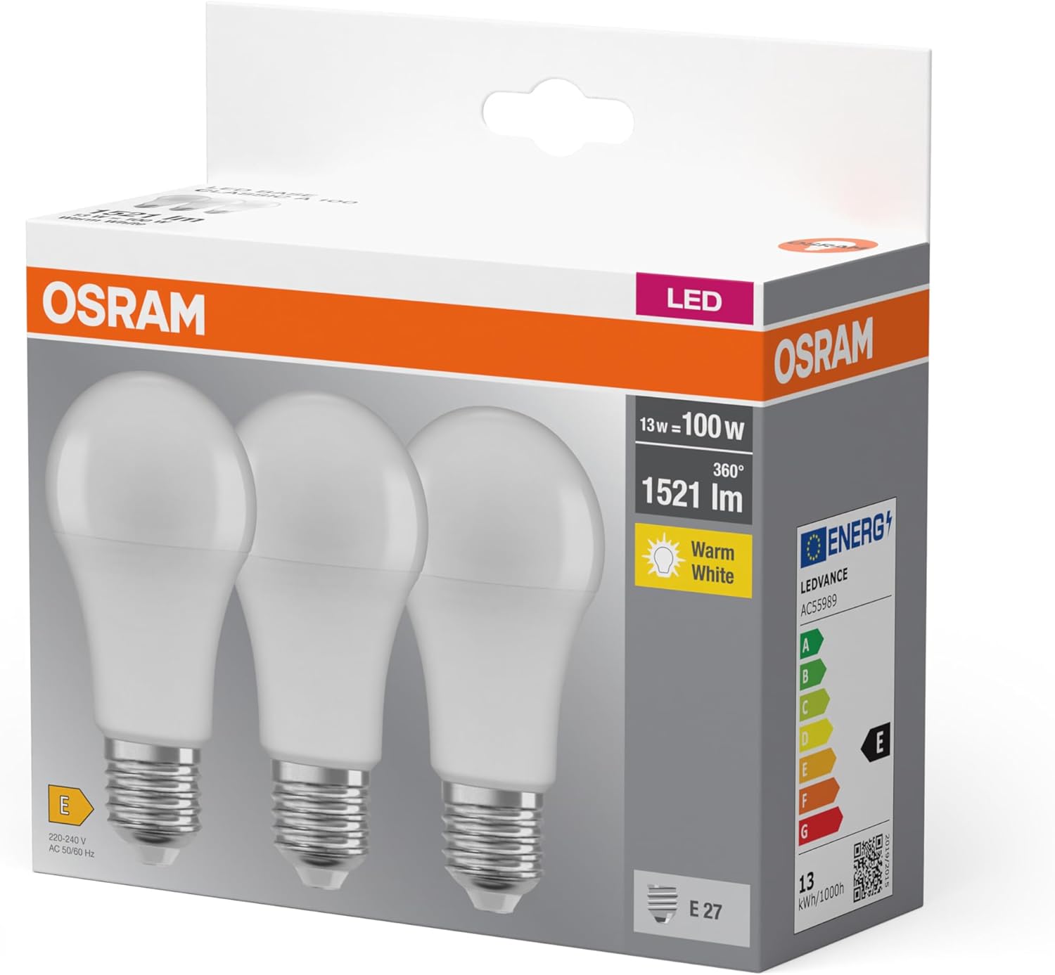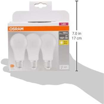 Lumina este Osram. Vă punem viața în lumina potrivită. De mai bine de 100 de ani, marca tradițională Osram este sinonimă cu inovații unice, calitatea produselor de top la nivel mondial și cea mai înaltă eficiență energetică. Lămpile și sistemele de iluminat Osram sunt utilizate de clienți din întreaga lume într-o gamă largă de domenii și și-au dovedit eficiența de-a lungul multor decenii. Produsele moderne reprezintă cea mai înaltă calitate a luminii, economii semnificative de energie, precum și durabilitate și siguranță tehnică. Împreună cu o garanție remarcabilă, acestea permit o iluminare interesantă, diversă și sustenabilă. Bazați-vă pe inovațiile de pionierat și calitatea dovedită de la Osram. Caracteristici ale produsului: • Putere nominală: 13,00 W • Tensiune nominală: 220 - 240 V • Soclu (denumire standard): E27 • Formă lămpii: bec • Flux luminos: 1521 lm • Culoare lumină (denumire): Alb cald • Indice de redare a culorii Ra: ≥80 • Unghiul fasciculului: 200°. • • • Durată nominală: 15.000 de ore. Număr de cicluri de comutare: 100.000. Diametru: 60,0 mm. Lungime: 120,0 mm. Clarificare a culorii: adaptați diferitele influențe de culoare din camerele dumneavoastră la cerințele dumneavoastră. Lumina albă caldă asigură bunăstare și relaxare. Culoarea caldă asigură pace interioară și siguranță. Lumina albă rece creează mediul perfect pentru o concentrare mai mare și performanță vizuală. Lumina zilei întărește mintea similar cu lumina soarelui. De asemenea, are un efect revigorant asupra oamenilor și animalelor, chiar și în zilele înnorate. Nuanța albă vă ascute simțurile și vă susține curba de performanță. Avantajele produsului: consum foarte redus de energie, rezistent la șocuri și vibrații datorită tehnologiei LED, fără proporții UV și IR în fasciculul luminos, lumină instantanee 100%, fără timp de încălzire, înlocuire ușoară a lămpilor incandescente standard, generare mai mică de căldură (comparativ cu produsul standard de referință), domenii de aplicare, aplicații casnice, iluminat general, aplicații exterioare. numai cu lămpi adecvate • Consum de energie: 13 kWh/1000 h la 1521 lm • Lumină albă caldă pentru bunăstare și relaxare în sufragerii, dormitoare și camere pentru copii • Înlocuire ușoară a lămpilor incandescente standard, înlocuitor original pentru un bec de 100 W (utilizare în exterior numai cu lămpi adecvate)