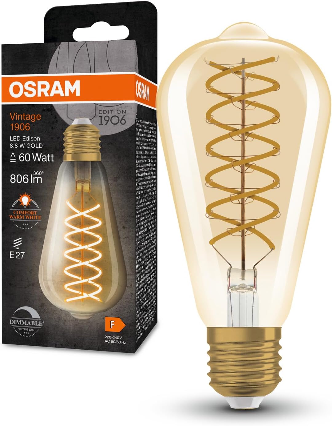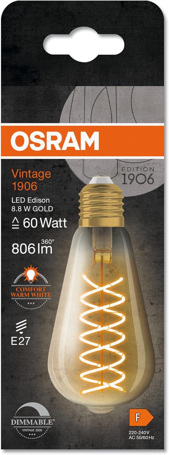 [RESIGILAT] OSRAM LED Vintage 1906, bec Edison E27, 8.8W, alb cald