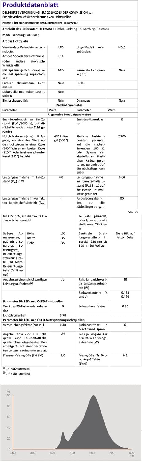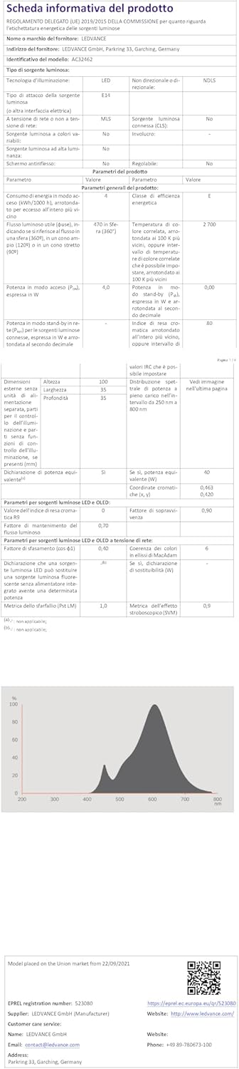 - înlocuire ușoară a lămpilor incandescente standard, înlocuitor real pentru o lampă incandescentă de 40 W (utilizare în exterior numai cu corpuri de iluminat adecvate)