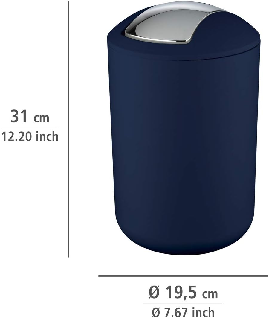 Coș de gunoi modern cu capac basculant pentru baie sau uz casnic. Fabricat din plastic de înaltă calitate. Culoare: albastru închis. Cu o capacitate de 6,5 litri. Dimensiuni: 19,5 x 31 cm. • Coș de gunoi ideal cu capac basculant pentru baie sau uz casnic • Un coș de gunoi elegant cu capac basculant pentru băi sau bucătării • Fabricat din plastic special de înaltă calitate, complet rezistent la spargere • Cu o capacitate de 6,5 litri