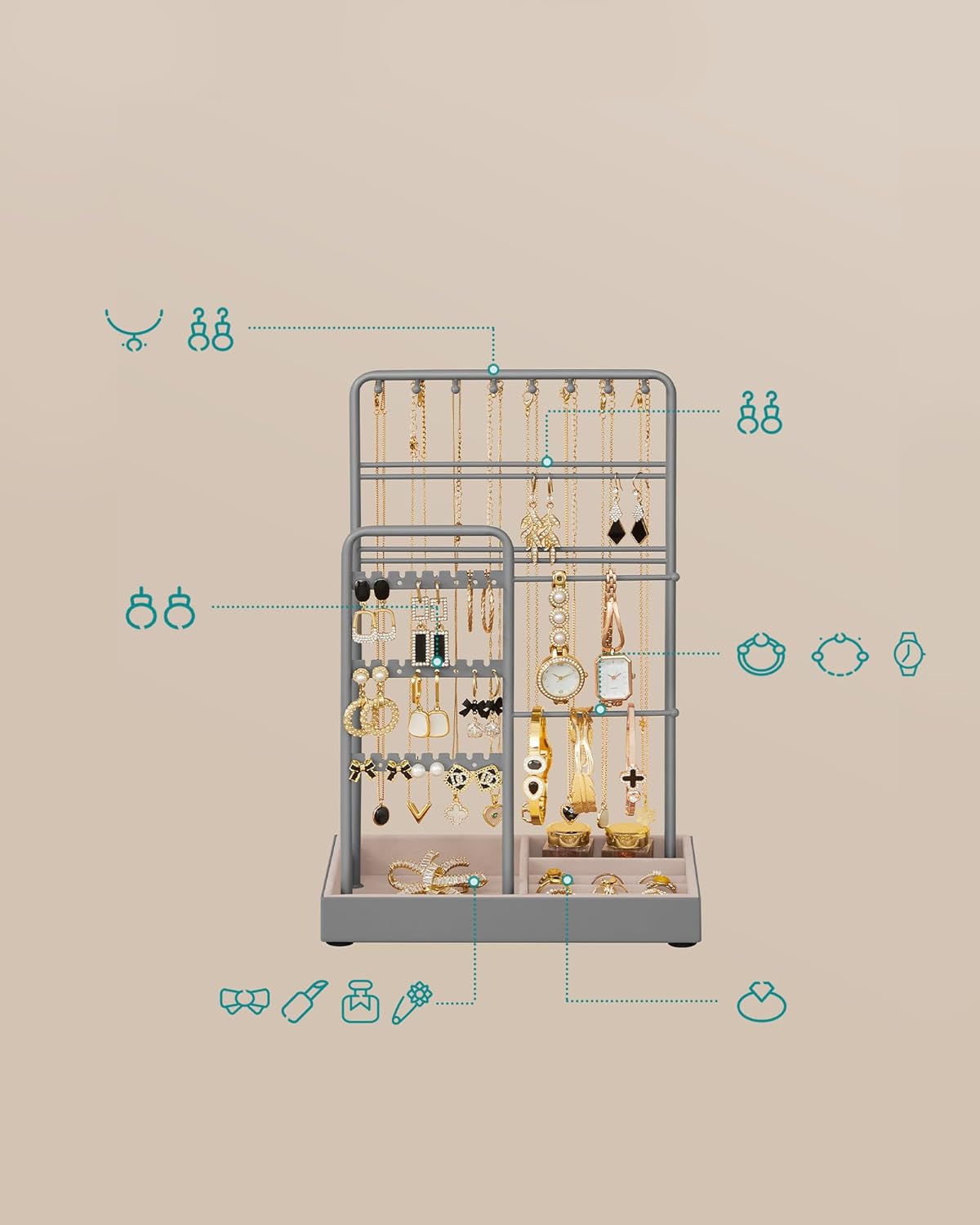 [RESIGILAT] SONGMICS JJS021G01, Suport bijuterii metalic, gri porumbel