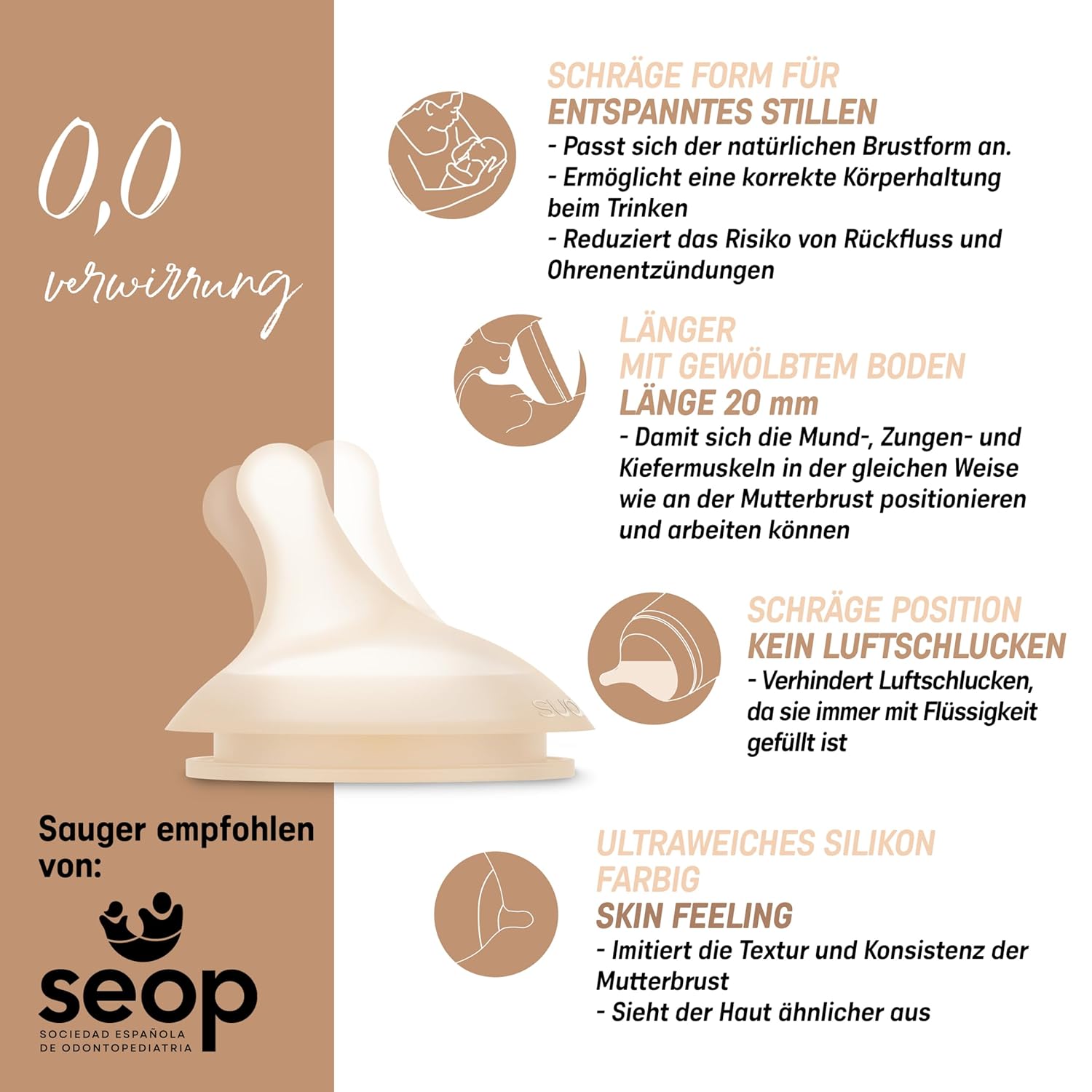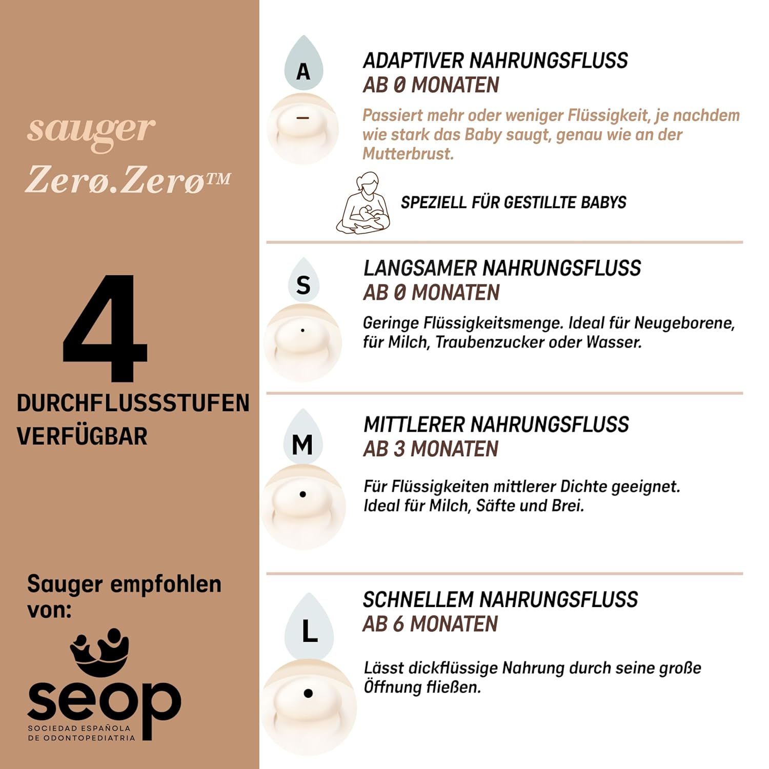 Informatii despre acest articol PACHET cu 2 suzete pentru biberonul Zero Zero. Suzete cu debit dens (L). Suzetele sunt compatibile doar cu biberonul Suavinex Zero Zero. DEBIT DENS (L). +6 LUNI. Permite trecerea lichidelor groase datorita orificiului mare. IMITA SANUL MATERN. Suzetele din silicon imita sanul matern in forma, lungime si senzatie. MINIMIZEAZA confuzia tetinei cu mamelonul. Bebelusul alaptat mixt revine usor la san, fara a-l respinge. Bebelusii hraniti cu biberonul accepta suzeta in cel mai natural mod. Pentru lapte matern si lapte praf. SILICON ULTRA-MOALE. Suzete din silicon ultra-moale. Imita mamelonul in textura si consistenta: silicon super-fin si mai moale ca niciodata. Mai multe detalii despre produs.