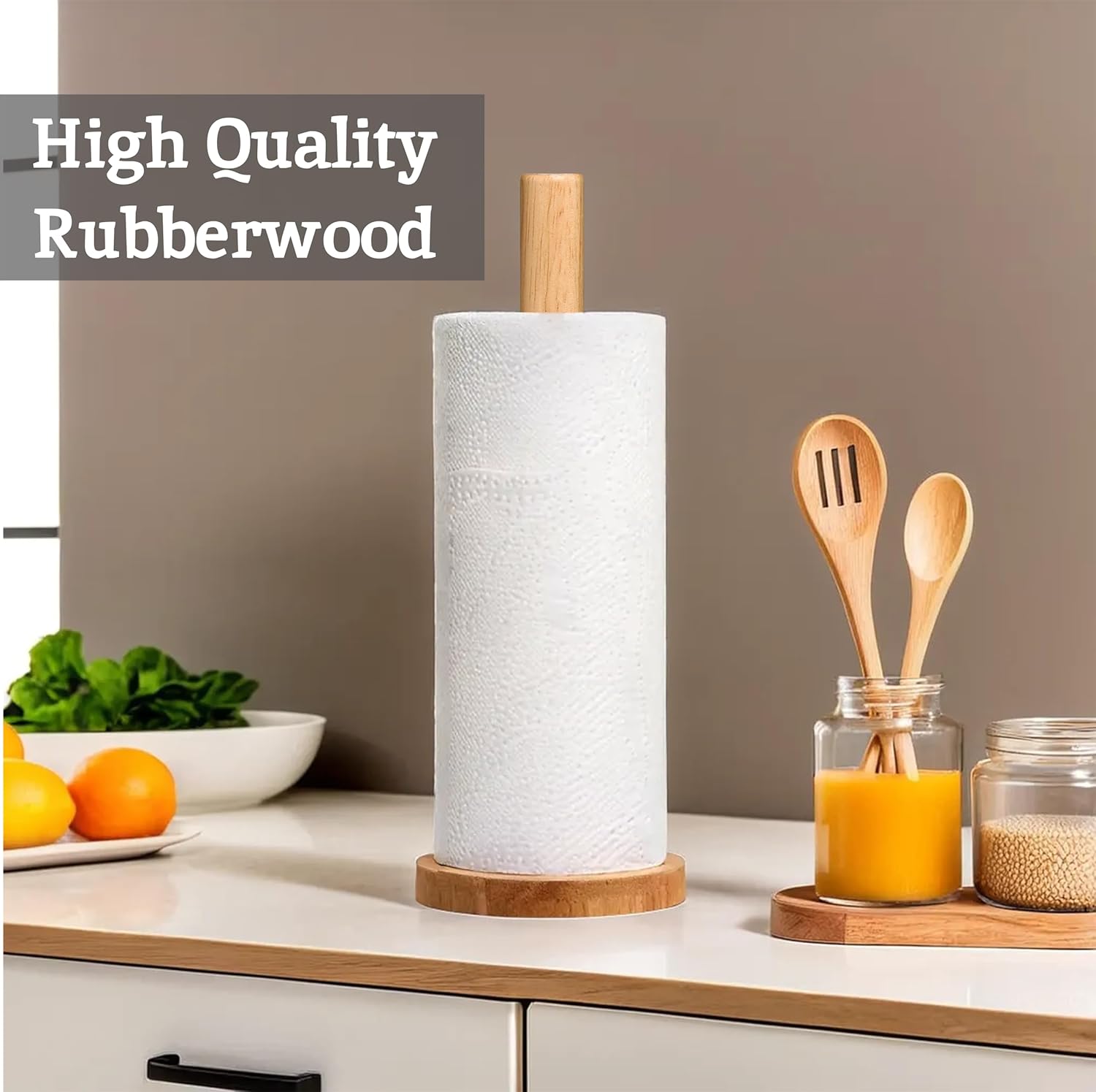 Natural antifungic: Lemnul de cauciuc utilizat în acest suport pentru role de bucătărie are proprietăți naturale antifungice, ceea ce îl face un accesoriu igienic pentru bucătăria dvs. Acest lucru asigură că suportul dvs. pentru role de bucătărie rămâne curat și sigur pentru utilizarea zilnică