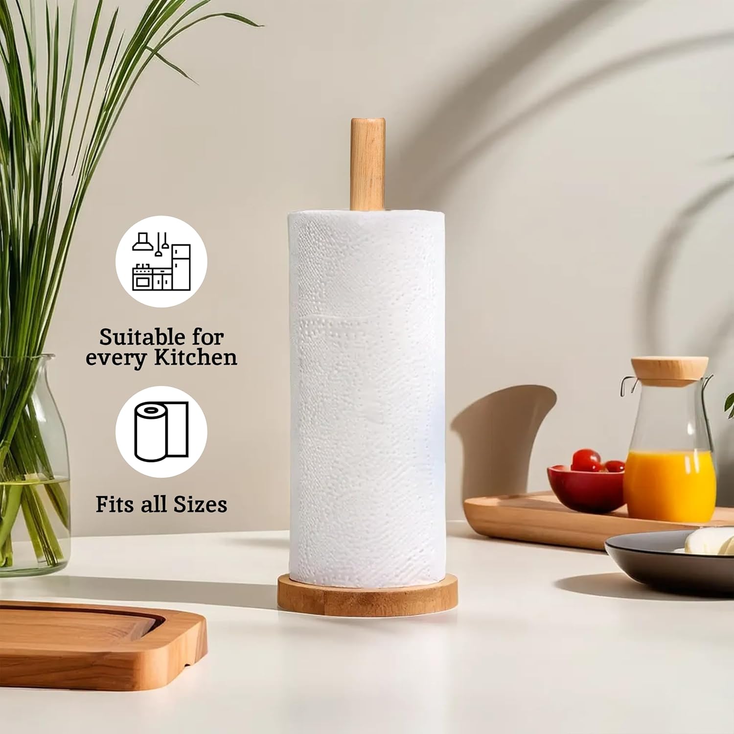 【Robust și stabil】 Conceput pentru utilizarea zilnică, acest suport de bucătărie are o bază groasă care asigură stabilitate. Indiferent dacă îl utilizați ca suport pentru role de hârtie igienică sau suport pentru prosoape de hârtie, construcția sa robustă asigură că rămâne în poziție