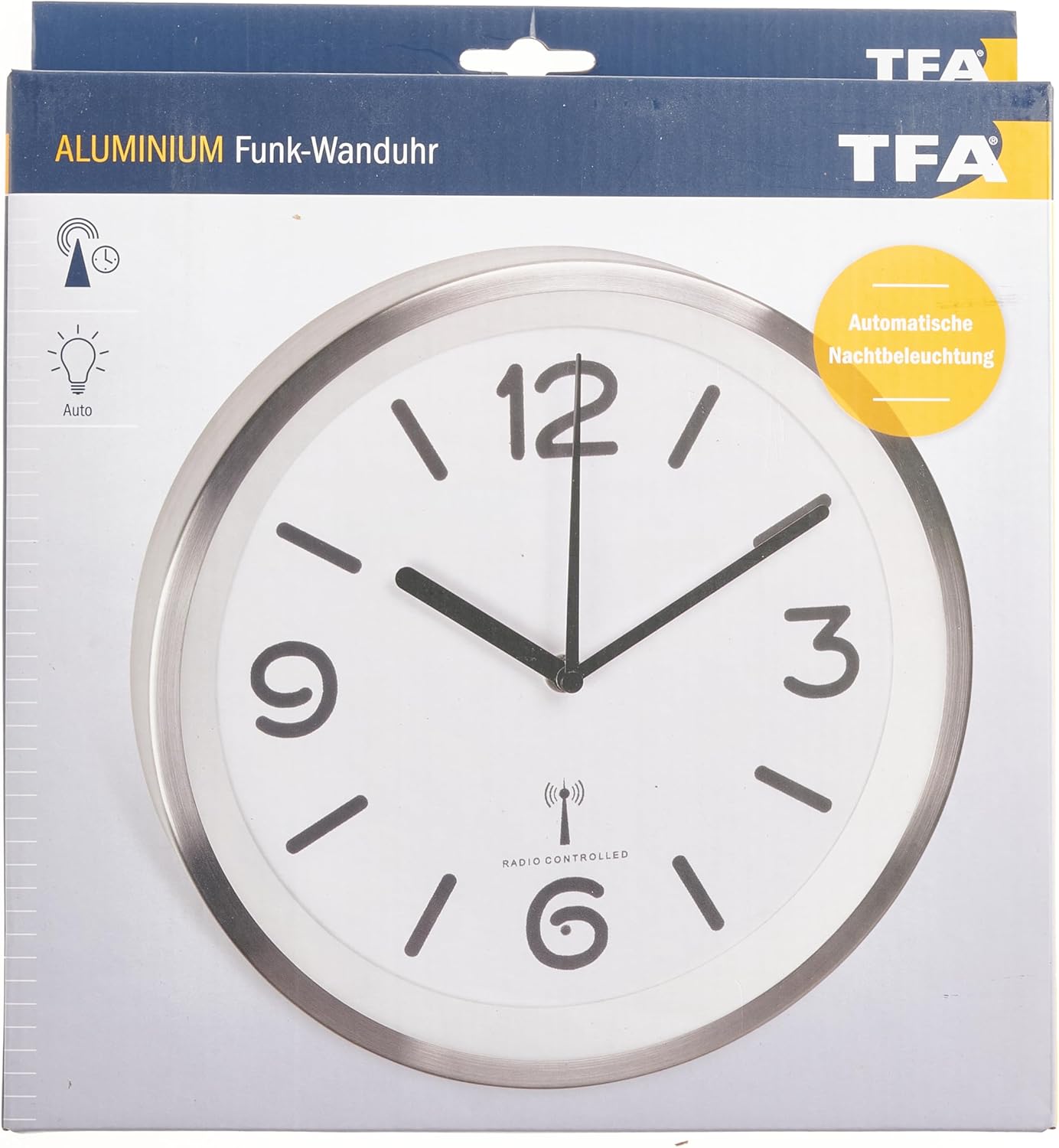 [RESIGILAT] TFA-Dostmann Ceas Perete Radio, Iluminare Fundal, Alb, 25 cm