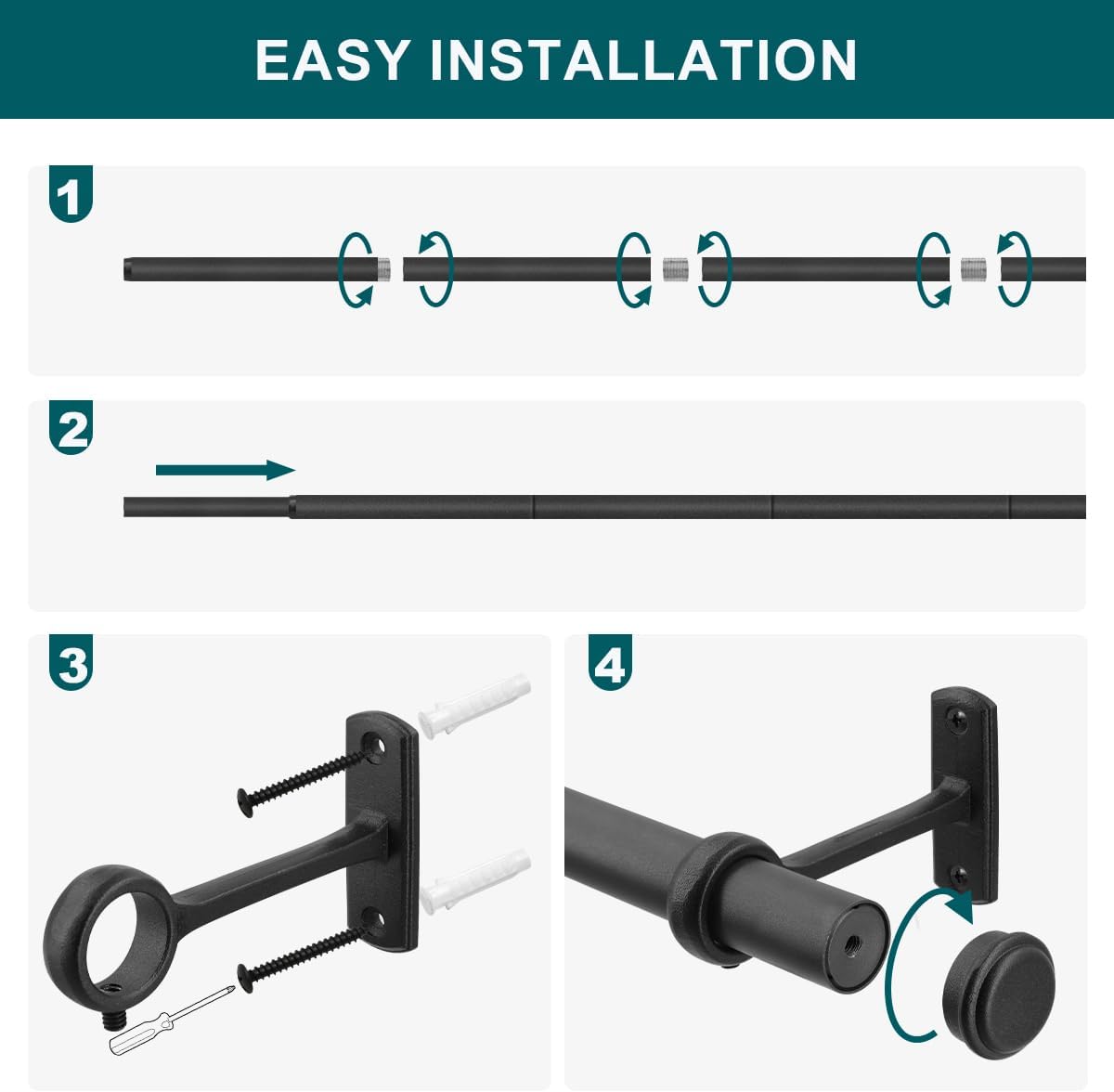 Despre acest produs Simplitate modernă: Ridicați stilul camerei dvs. cu setul nostru de stâlpi pentru perdele cu un design elegant și modern. Finisajul negru mat adaugă o notă de sofisticare și creează o estetică modernă care se integrează perfect în orice decor. Calitate bună și durabilitate - Spre deosebire de stâlpii ieftini din plastic, stâlpii noștri pentru perdele sunt fabricați din metal robust, ceea ce garantează o durată lungă de viață. Pentru seturile de stâlpi pentru perdele mai lungi de 150 cm, includem și un suport central pentru stabilitate suplimentară. Ajustabilitate mai bună - Spre deosebire de stâlpii tradiționali pentru perdele cu un design de îmbinare, ai noștri oferă o combinație de design SPLICE și design de stâlp telescopic, permițând o gamă mai largă de ajustare a lungimii. Oferim patru game de dimensiuni pentru a se potrivi majorității dimensiunilor ferestrelor. Versatilitate: Fie că preferați opțiunile montate pe tavan sau pe perete, această tijă oferă soluția perfectă pentru nevoile dvs. Această tijă pentru perdele se integrează perfect într-o varietate de interioare, fiind o alegere perfectă pentru dormitoare, camere de zi, birouri și multe altele. Instalare ușoară - seturile noastre de baghete pentru perdele negru mat vin cu instrucțiuni detaliate de instalare, precum și cu accesoriile necesare (șuruburi și dopuri). Cu stâlpii noștri pentru perdele, puteți fi siguri că instalarea este rapidă și ușoară. Alte detalii despre produs