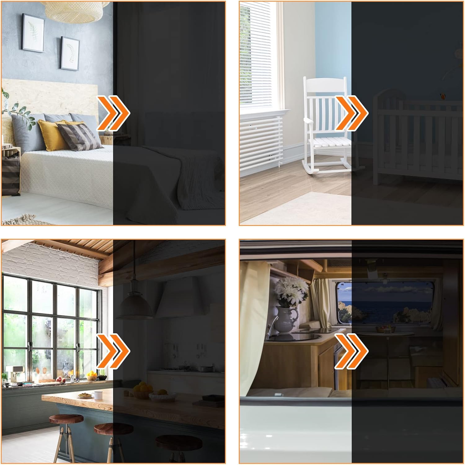 Aplicare largă: Jaluzele fără găurire, folie portabilă de întunecare pentru ferestre, potrivită pentru dormitoare, birouri, grădinițe, hoteluri, apartamente, rulote etc.