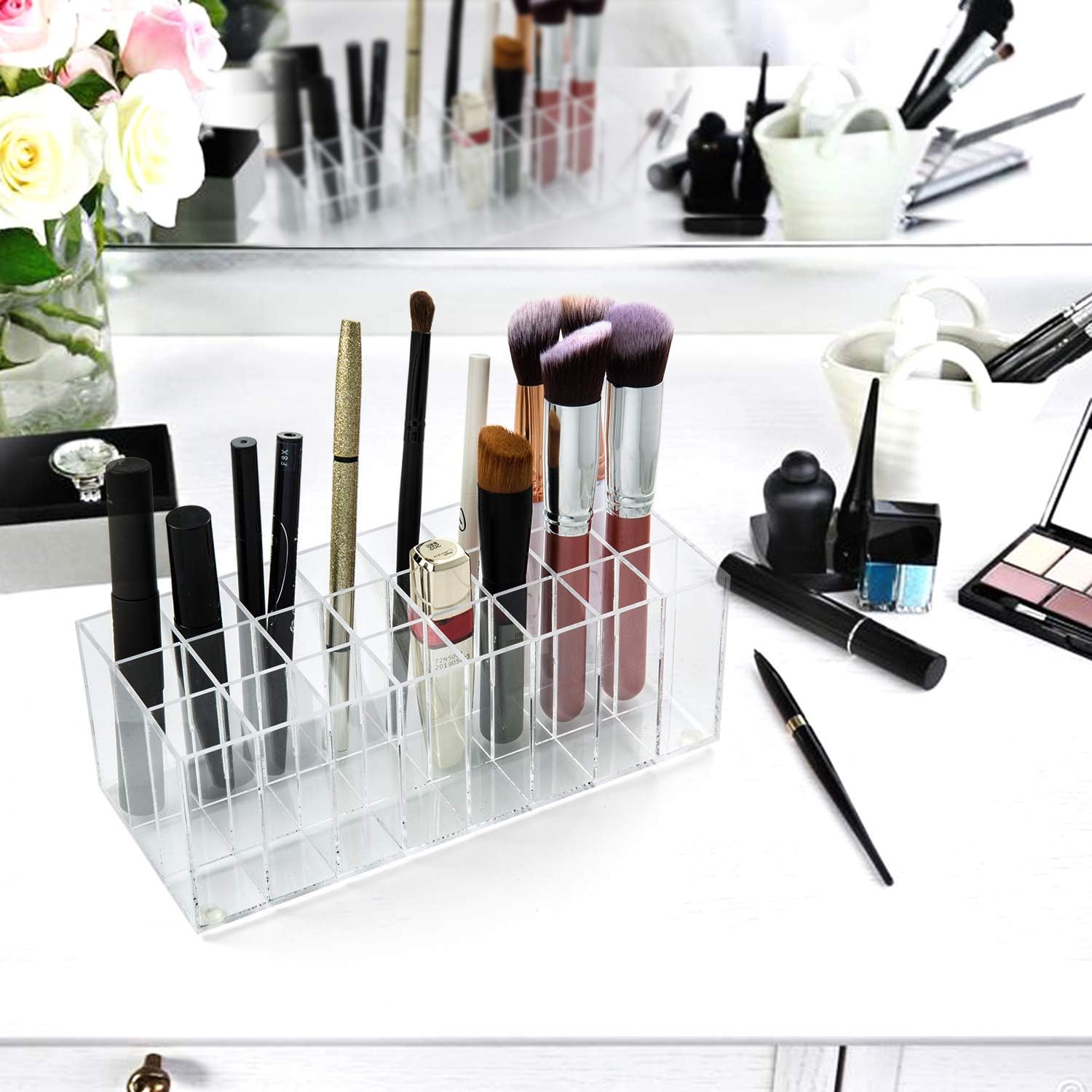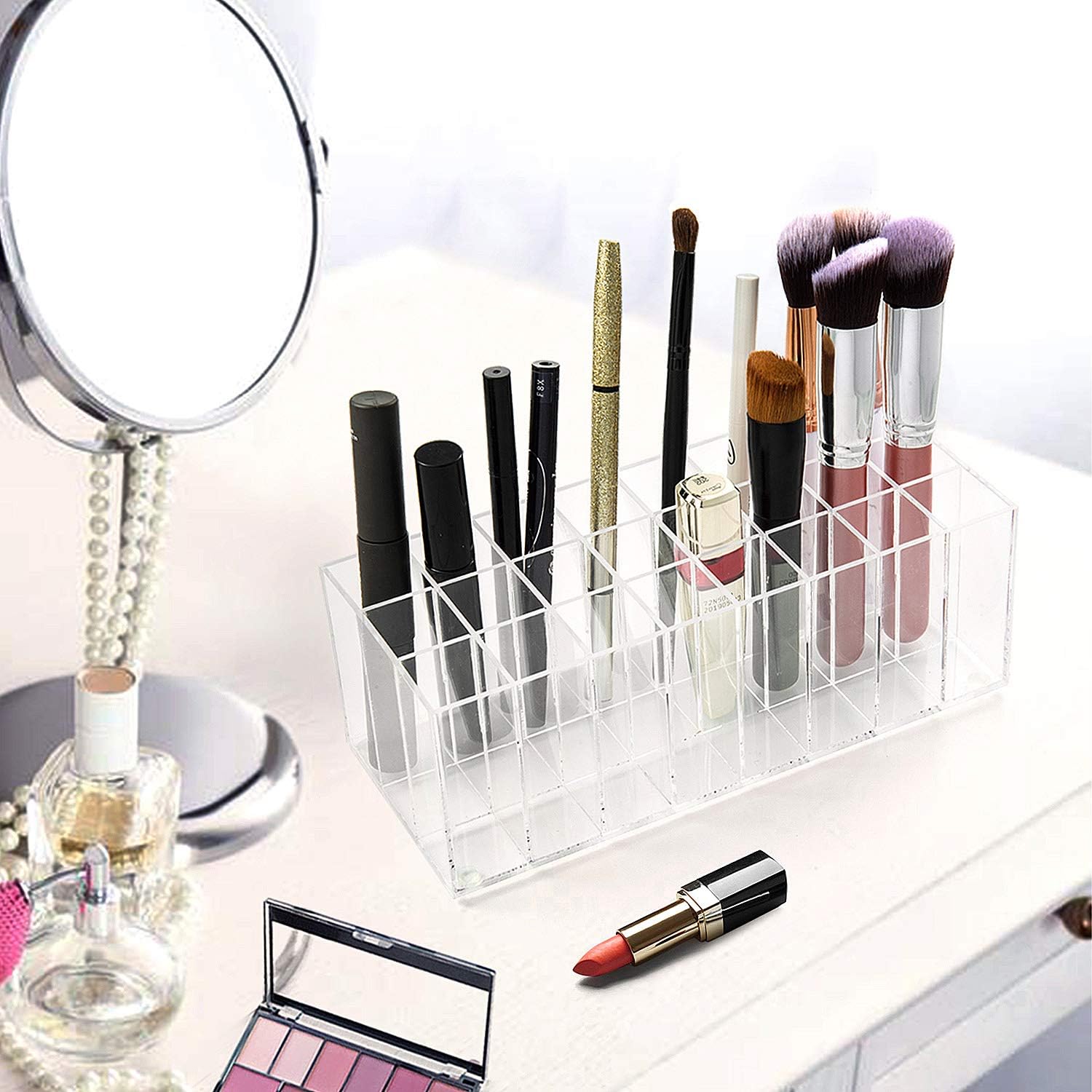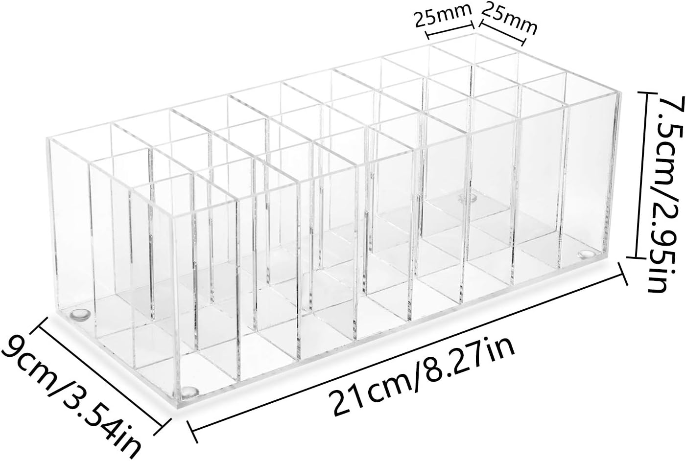 Despre acest articol Material: Acrilic, durabilitate și siguranță. Dimensiune perfectă: 24 x 9 x 7 cm (9,4 x 3,54 x 2,7 inchi), fiecare cub interior: 2,5 x 2,5 cm. 24 de compartimente de depozitare sunt ideale pentru depozitarea rujurilor, luciurilor de buze, cremelor hidratante de buze sau pensulelor de machiaj. Astfel, îl veți găsi cu ușurință pe cel pe care îl căutați. Acest fantastic suport transparent pentru rujuri arată bine pe masa de toaletă. Unitate de depozitare perfectă pentru utilizatorii de machiaj și profesioniști. › Mai multe detalii despre produs
